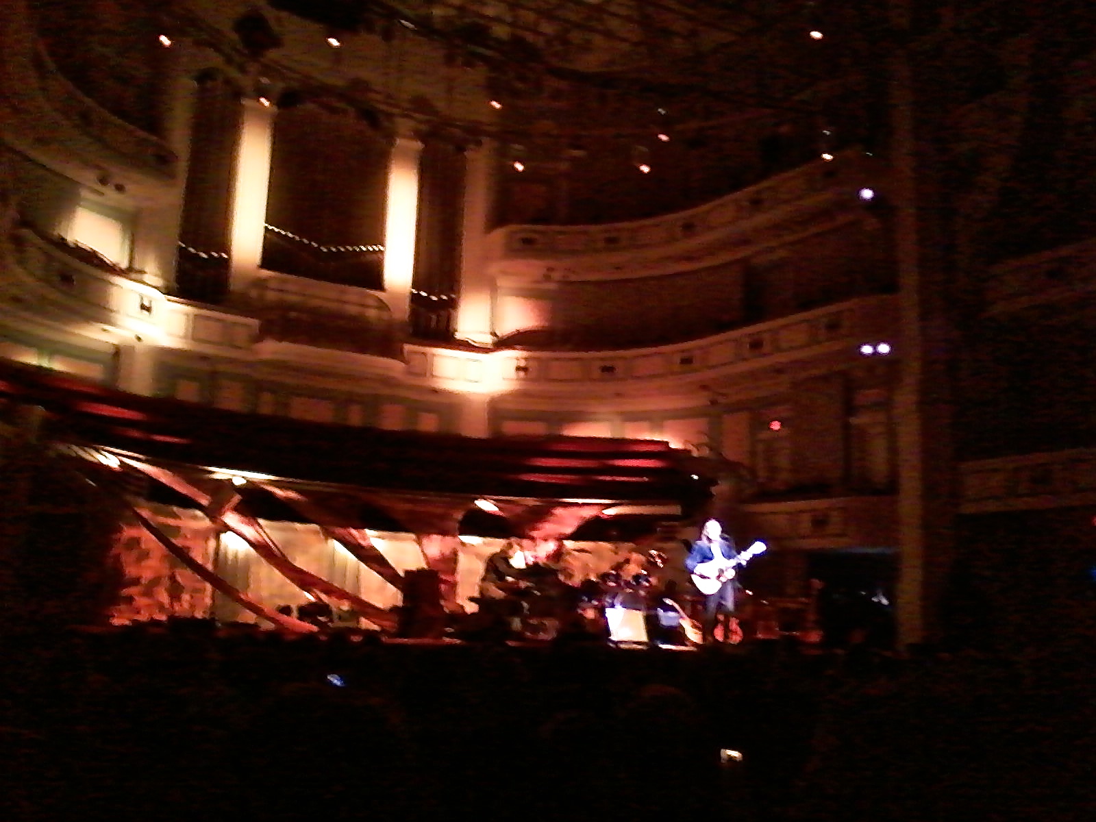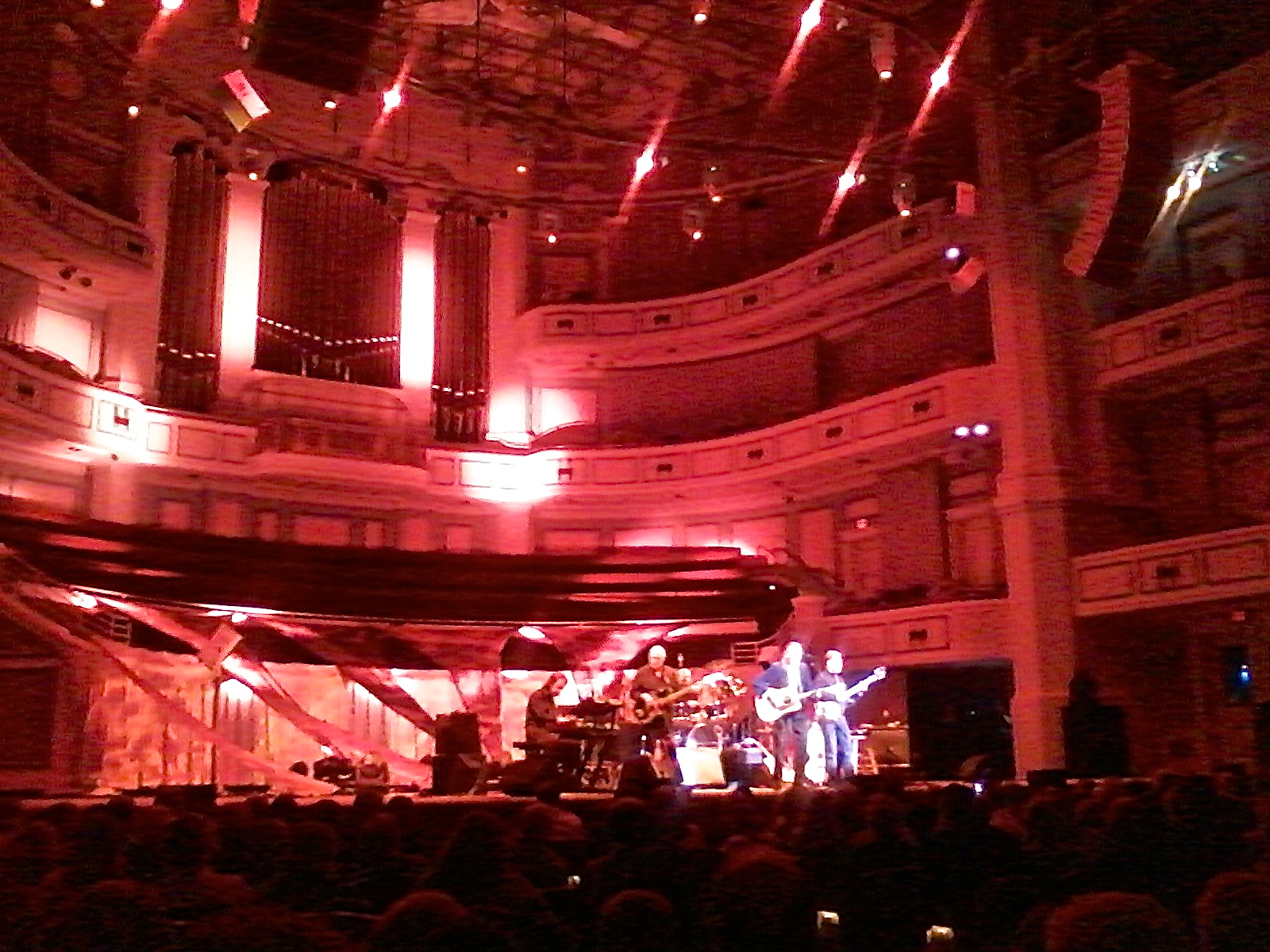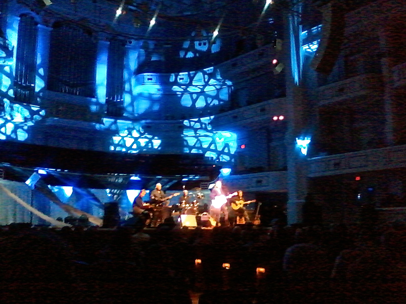 Thanks for posting the set list Steve and thank you Kelly for your recollections of the evening. I was also in attendance at the Carmel concert Thursday night. I don't have much more to add, but I wanted to post a few pics from the show. I apologize for the low resolution and the lack of a zoom lens on my phone camera. I was impressed with the stunning lighting effects used in this symphonic concert hall setting. Somewhat different from the proscenium stages Gord usually performs on. The triangular backdrops were placed lower than usual, showcasing the choral loft and organ pipe ranks for an almost "church-like" setting (the Church of Gord?) The light-colored walls of the hall lent themselves for projecting lighting effects. A very enjoyable evening of classic Gordon Lightfoot music.