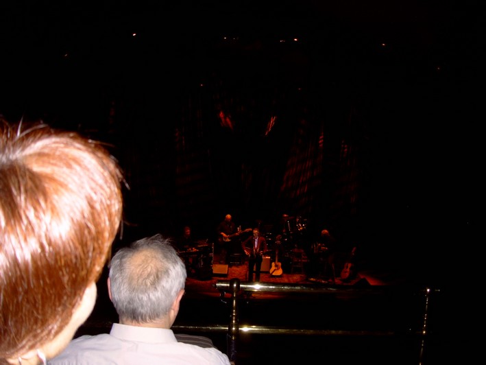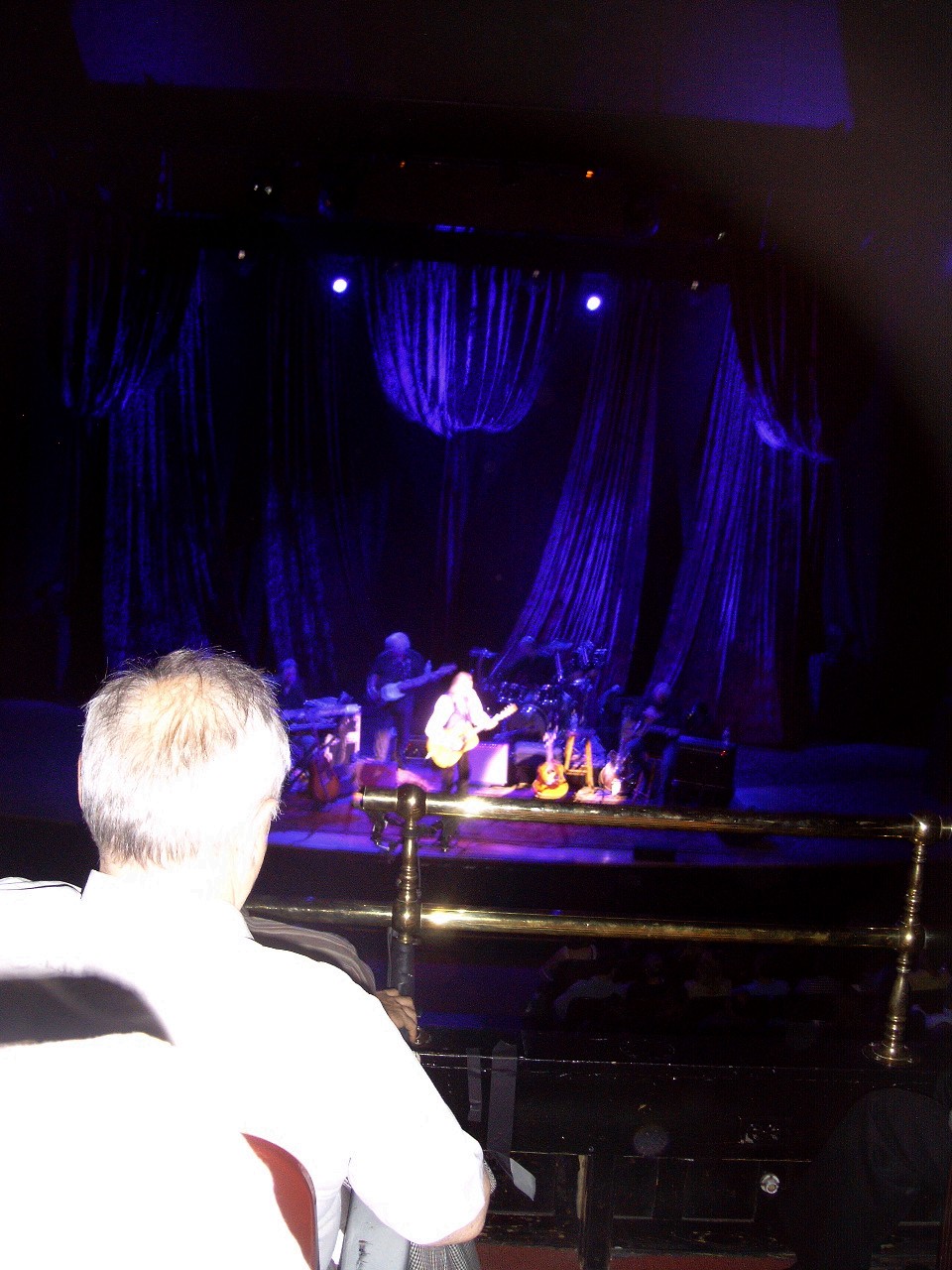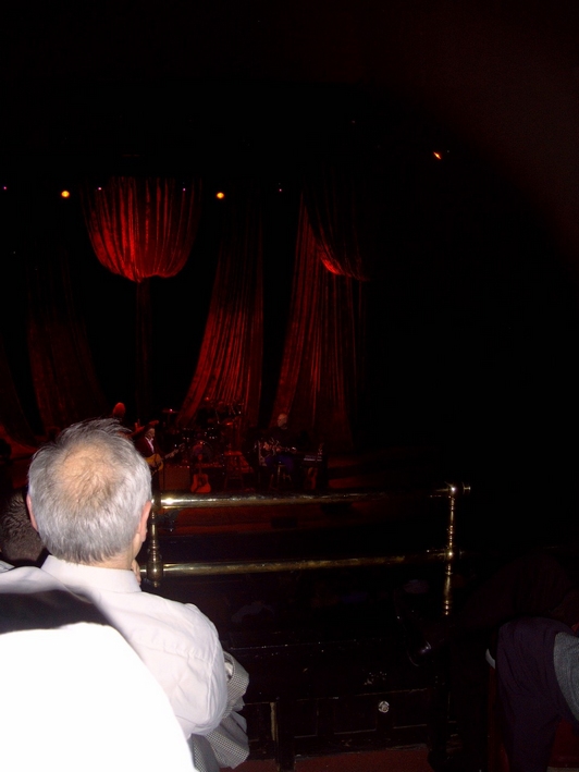 Massey generally allows photography as long as there is no intrusive and distracting flash. Unfortunately Pam's camera was beginning to act up, preventing her from turning the flash feature off or to zoom in. Here are a few more photos showing Pam's view of the stage from the balcony as well as a study of the 'follicley challenged' scalp of the gentleman sitting in front.